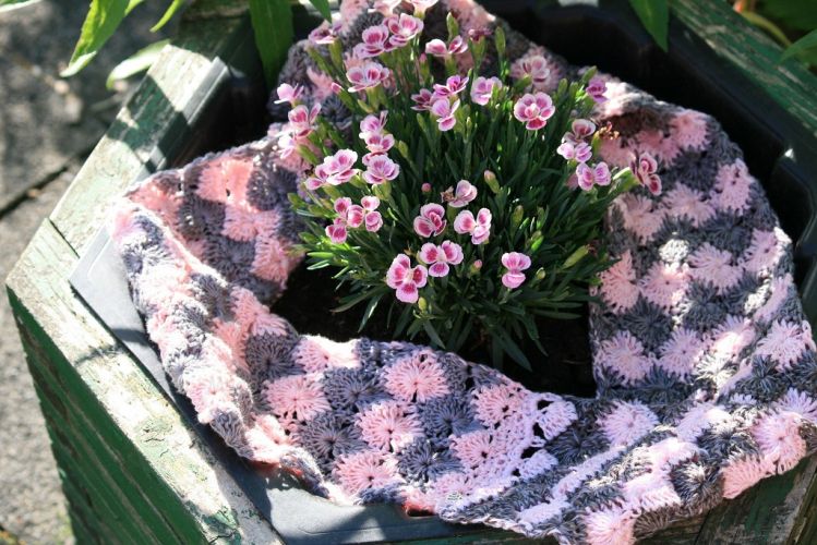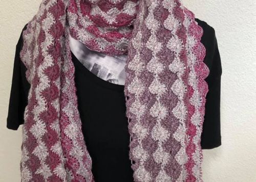 Und das Muster ist auch variabel, ob ihr das über die lange Seite häkelt, oder die schmale Seite nehmt, kommt drauf an, wie ihr den Farbverlauf haben wollt. Außerdem hat man noch die Möglichkeit den Schal als Loop oder als Möbius nach der Fertigstellung zusammenzunähen/-häkeln.