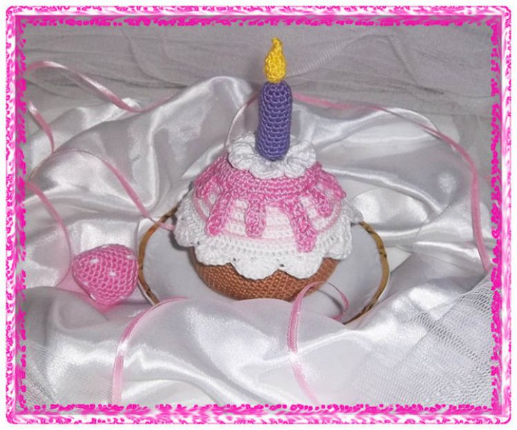 Warum nicht mal einen gehäkelten Muffin mit Kerze zum Geburtstag verschenken und bei der Kerze kann bestimmt kann Feuer ausbrechen :o) Dieser Muffin macht sich sehr schön auf dem Geburtstagstisch, jedes Jahr wieder und die Kerze wird nicht kleiner oder auch sehr schön als Geschenk für ein Geburtstagskind. Durch seine Größe ist er auch nicht zu übersehen. Wenn der Geburtstag vorbei ist kannst Du die Kerze auch schnell durch eine Erdbeere ersetzen und schon hast Du einen leckeren Erdbeermuffin. Muffin mit Kerze: 15cm x 9cmm Muffin mit Beere: 11cm x 9cm Muffin Kerze Erdbeere