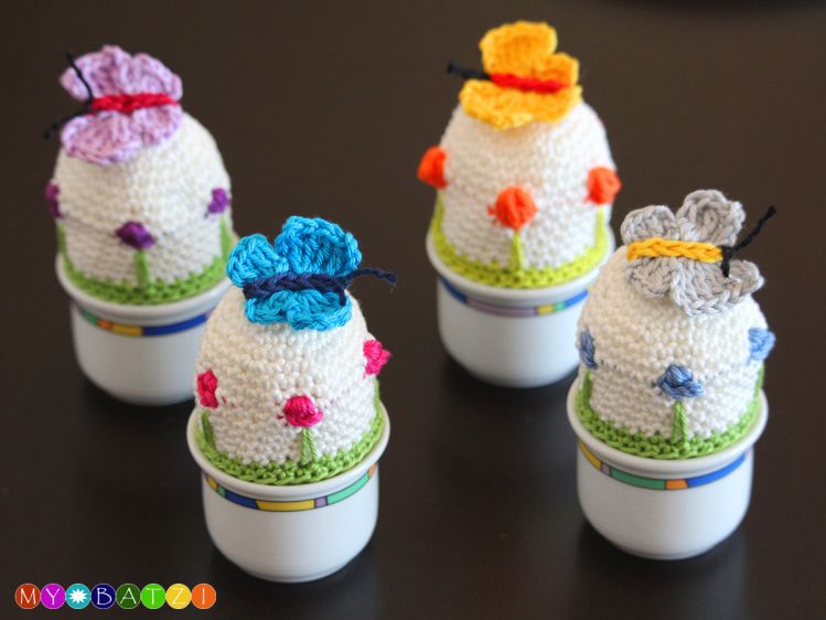 Die Eiermützen "Schmetterlingsflug" zaubern zudem bunte Farben auf den Wohnzimmer- oder Küchentisch.