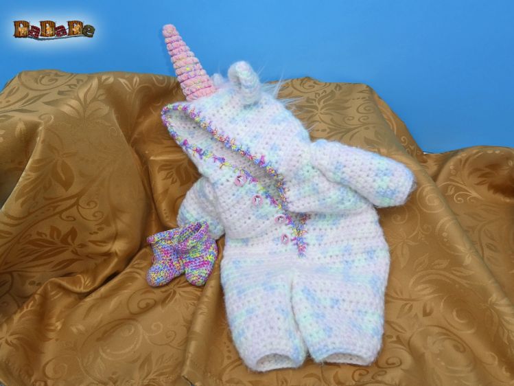 Sie kaufen hier die Häkelanleitung für diesen tollen Einhorn-Anzug,