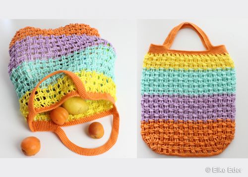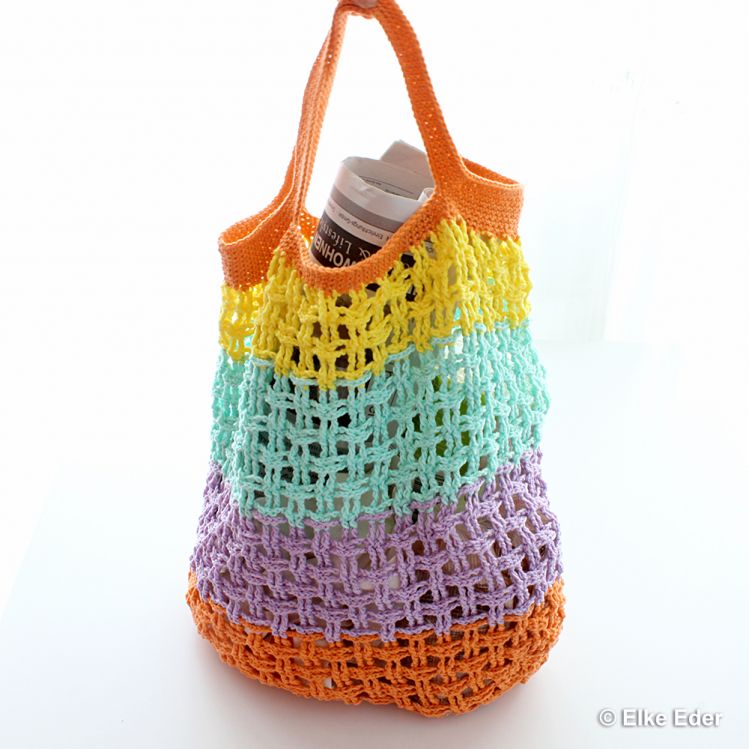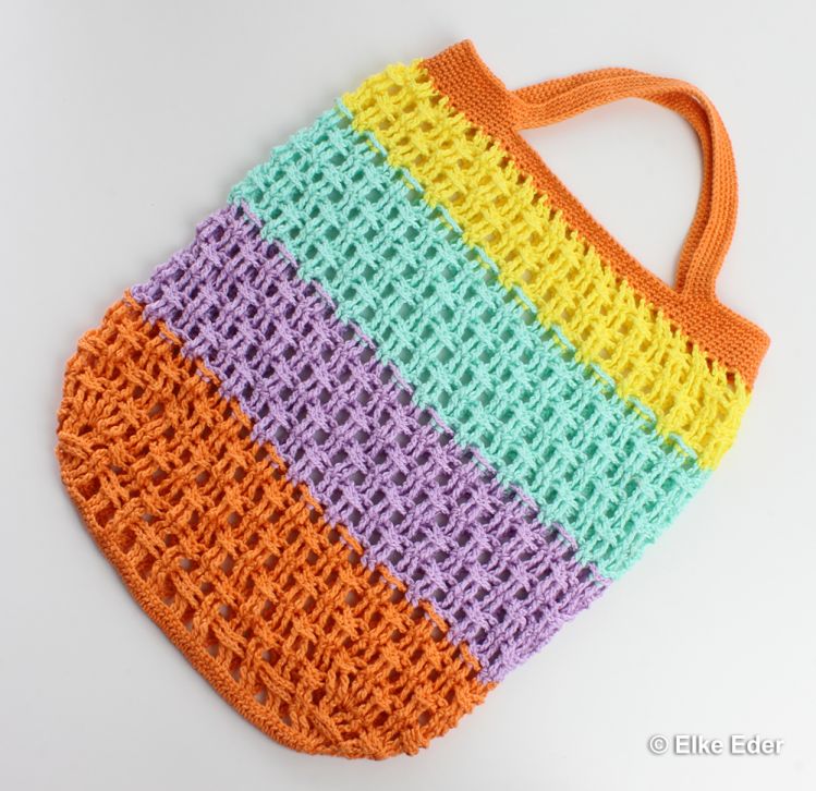 Kunterbunt und fröhlich, raffiniert vernetzt, praktisch für den Alltag, gut zur Umwelt und hervorragend für die Wollrestverarbeitung geeignet beschreibt dieses außergewöhnliche Einkaufsnetz treffend.
