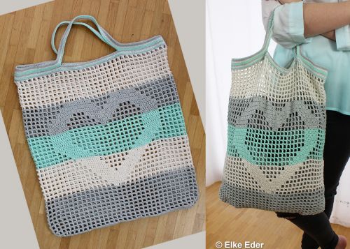 Durch das Filetmuster ist die Tasche schnell gehäkelt und auch eine schöne Geschenkidee.