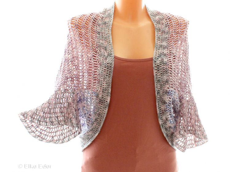 Genau richtig für kühle Sommerabende ist dieses bezaubernde Jäckchen. An kühlen Sommerabenden schnell reingeschlüpft peppt es jedes Outfit auf. Die Länge kannst du ganz individuell nach deinen Wünschen gestalten, so erhältst du in der Kurzversion (s. Fotos) ein schickes Bolerojäckchen, welches auch zum kleinen Schwarzen absolut salonfähig ist. Etwas länger gehäkelt wird daraus ein lässiger Seelenwärmer - ein zeitloses Must Have für viele Gelegenheiten!