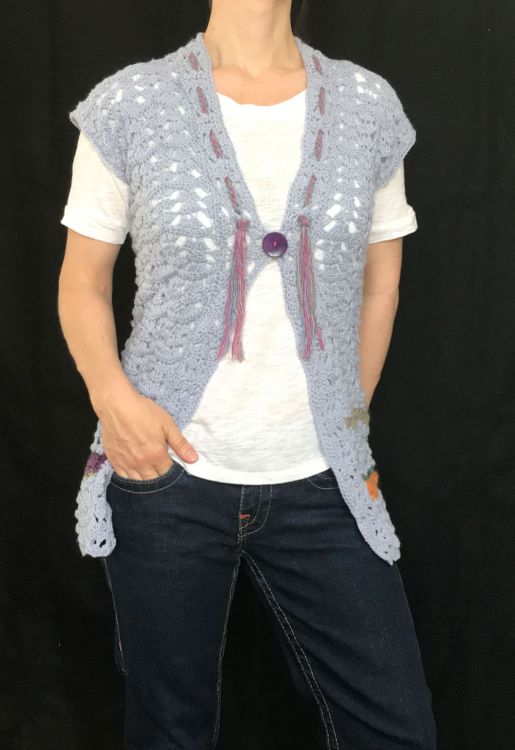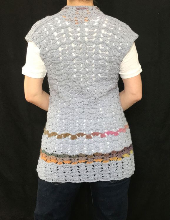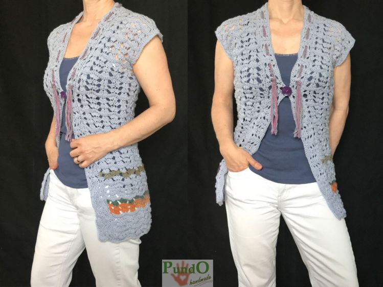 Die Weste lässt sich einfach in beliebiger Länge und Breite häkeln und damit perfekt an Eure Wünsche anpassen.