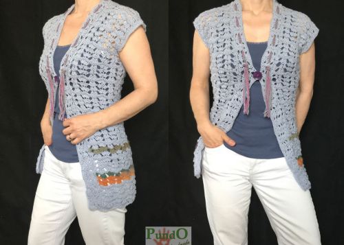 Diese Weste lässt sich wunderbar zu vielen Oberteilen kombinieren, ob schick oder lässig, ob mit Top oder mit Langarmshirt - ein Teil für viele Anlässe und Jahreszeiten, dazu noch raffiniert mit passender Kordel und dezenten Farbstreifen...