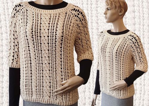 Freya ist ein etwas anspruchsvoller Pullover mit verschiedenen Zopfmustern.