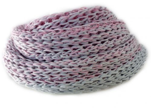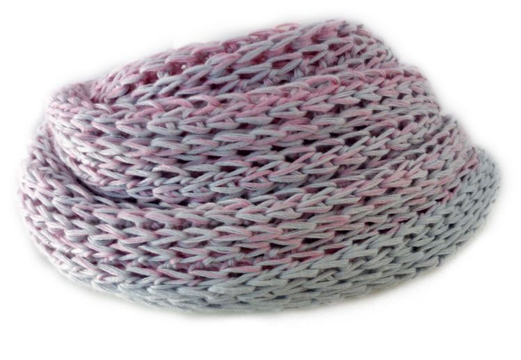 Der Loop wird in Runden gehökelt. Durch verschiedene Maschen erhält er seinen "gestrickten" Look. Material: 380m 8fach Verlaufsgarn (zB MyMelodyyBIG von wolltraum.eu Nadelstärke: 8,0mm