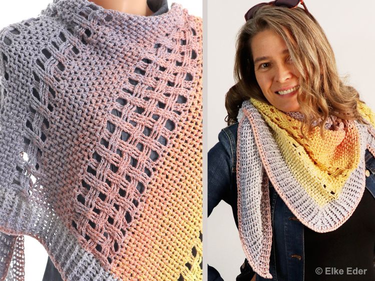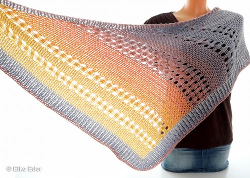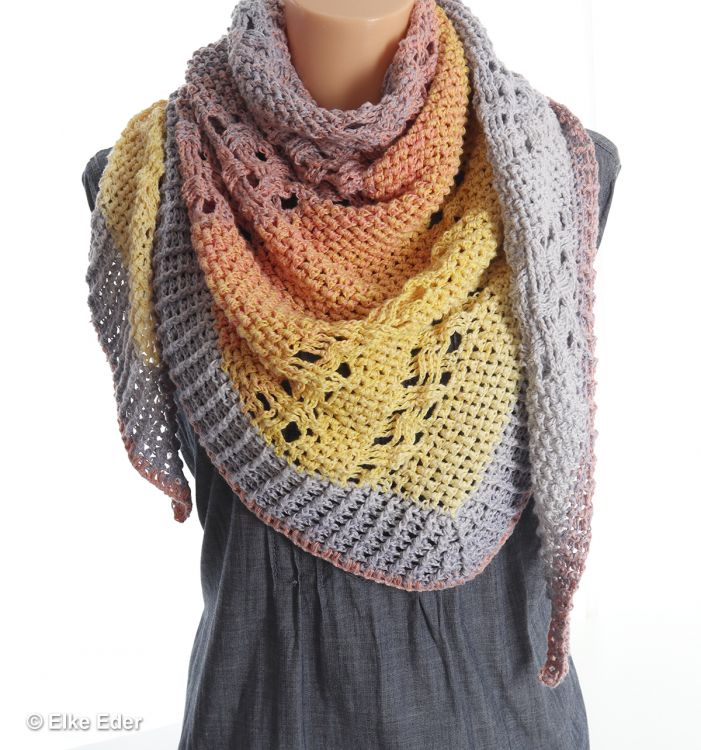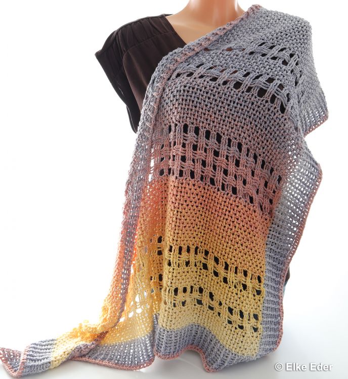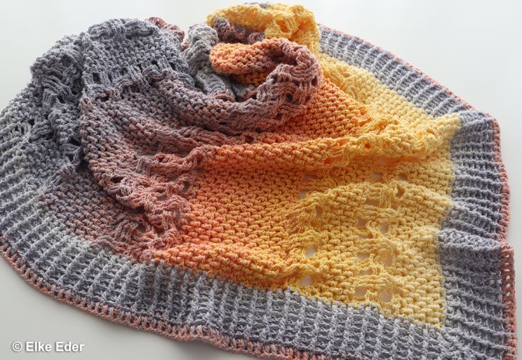 Bei diesem edlen Tuch sorgen der raffinierte Mustermix für kurzweiligen Häkelspaß und der fröhliche Farbmix für gute Laune. Das Tuch wird von der Seite aus gehäkelt.