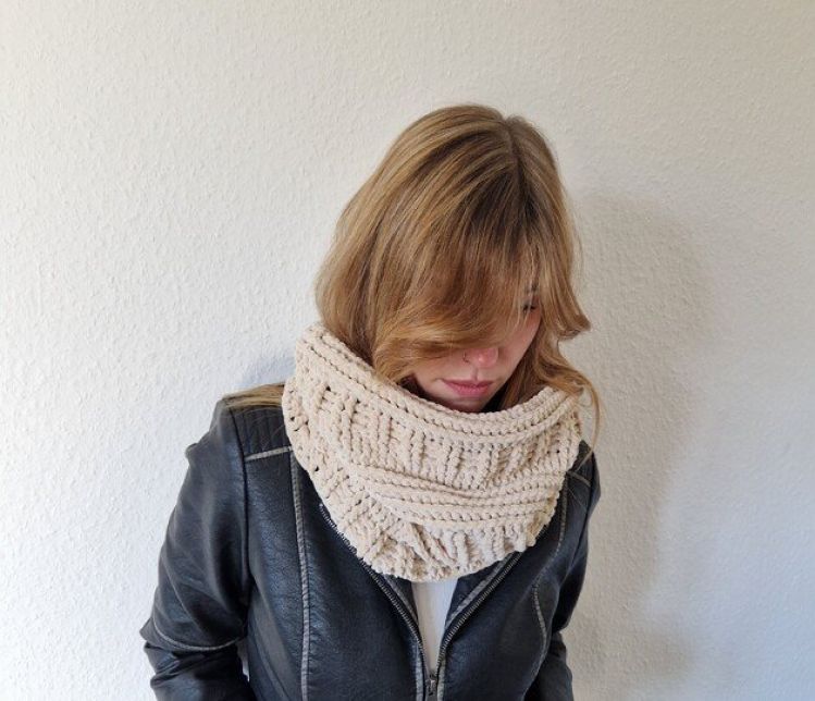 Häkelanleitung Schlauchschal Schal Kuschelteilchen Kirsten Ich habe auch eine Anleitung für das passende Stirnband. Auch als Set erhältlich. Anleitung für einen kuscheligen Schlauchschal aus den neuen Garn von myboshi. Myboshi Samt XS. Das Garn ist sehr weich und kuschelig. Häkel dein eigenes Kuschelteilchen in deiner Lieblingsfabe. Das Garn gibt es in vielen schönen Farben. Der Schlauchschal ist schnell und einfach gehäkelt. Meine Anleitung ist ideal für Anfänger. Keine umständlichen Häkelschriften. Ich habe die Anleitung Reihe für Reihe geschrieben. Sie benötigen: Myboshi Samt XS Macadamia 200g 50g = 90m Häkelnadel Nr. 6 Vernähnadel und Schere Fertige Maße: Breite: 38 cm Umfang: 76 cm Höhe: 29 cm Meine Anleitungen dürfen nicht weiterverkauft oder kostenfrei verteilt werden.