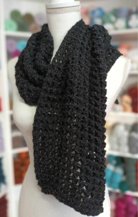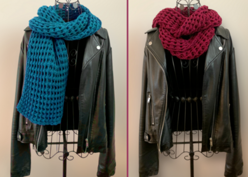 Depending on how many stitches are used at the beginning, the scarf/loop can be crocheted in any size (length/width). The pattern includes a table with the stitches/sizes obtained by the testers, which can serve as a guideline.