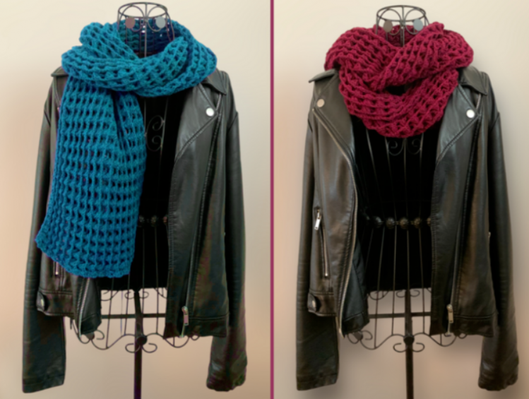 "Nephele" can be crocheted both as a scarf and as a loop scarf. The 3D pattern is very easy to remember and you can quickly crochet the scarf/loop alongside your favourite series. The unisex pattern is popular as an accessory for women, but also spices up men's outfits! If you crochet the loop/scarf with a larger hook size, it is also ideal for spring/autumn.