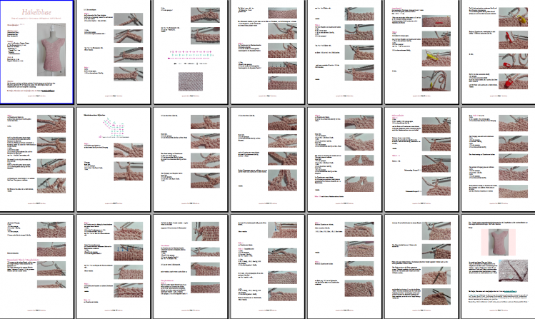 Das 21-seitige e-book im pdf-Format beeinhaltet eine detaillierte schriftliche und bebilderte Schritt-für-Schritt-Anleitung mit zusätzlichen am PC erstellten Häkelschriftausschnitten.