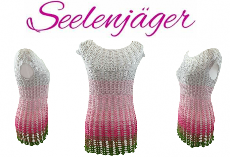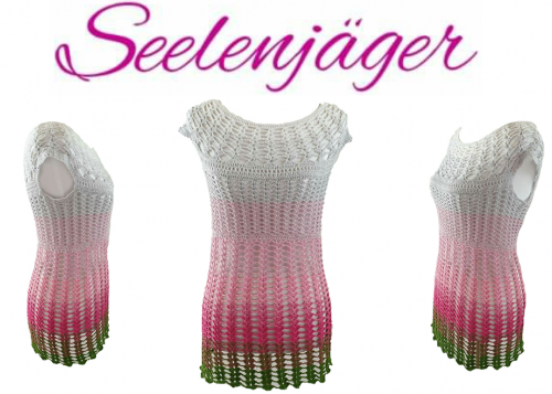 Die Tunika für die warmen Sommertage. Durch das Muster ist sie sehr luftig und leicht. Ideal zur Jeans oder Leggings. Die Anleitung ist Schritt für Schritt erklärt und enthält eine Häkelschrift.