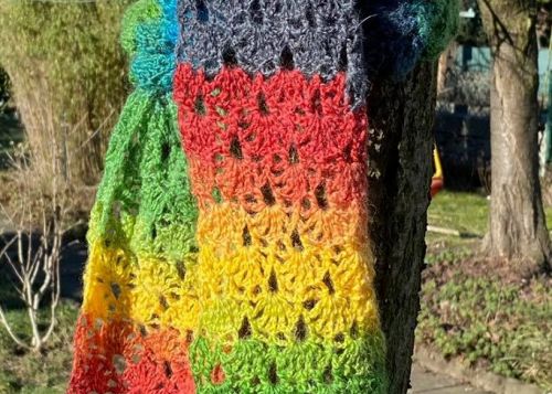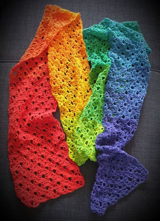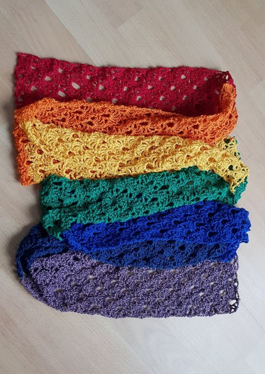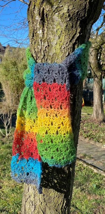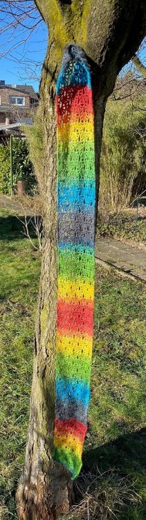 Diese Anleitung ist im Rahmen der Farbaktion von Mypatterns entstanden, bei der es die Aufgabe war einen Regenbogen mit 7 Farben unterzubringen. Ich habe mich für einen einfachen luftigen Frühlingsschal entschieden, der von der Farbigkeit der Wolle lebt. Als Variante kann der Schal auch sehr gut als Stola gearbeitet werden.