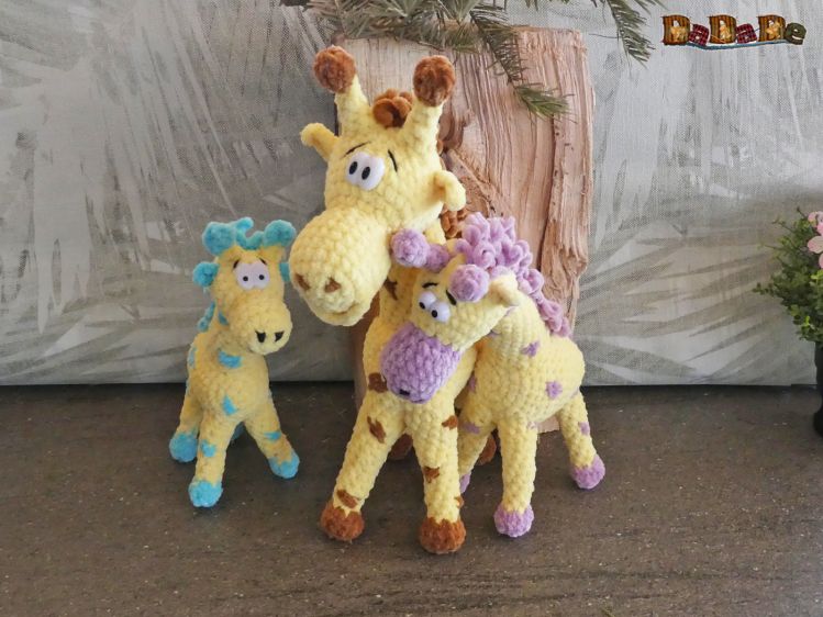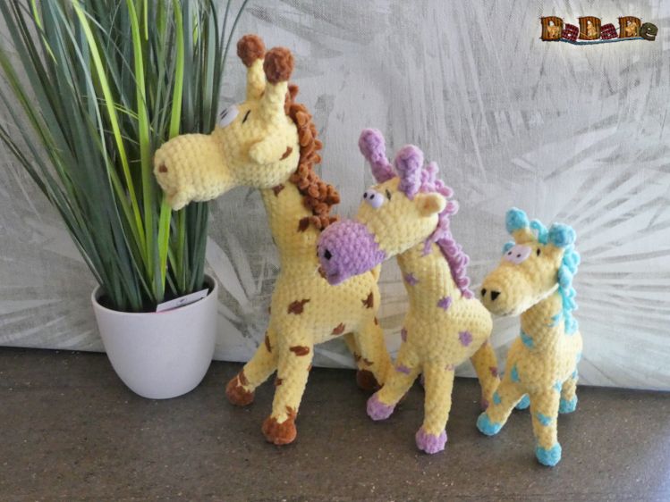 Sie kaufen hier die Anleitungen für diese 3 Giraffen, in 3 verschiedenen Größen.