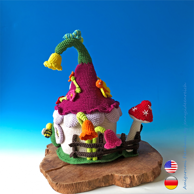 Ihr könnt hier die komplett ausformulierte Häkelanleitung zu gehäkelten Feenhaus erwerben.
