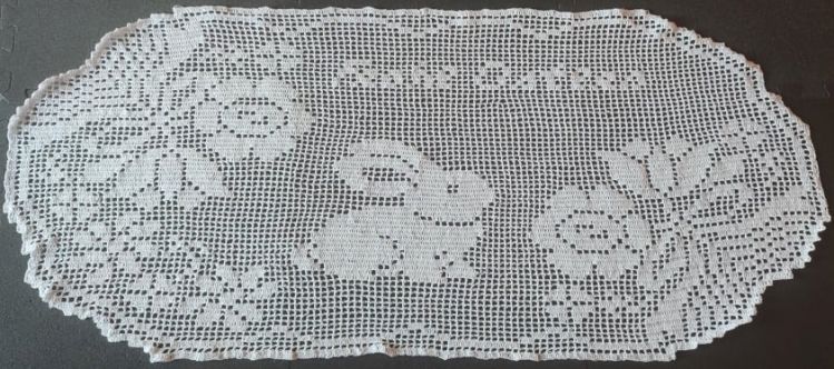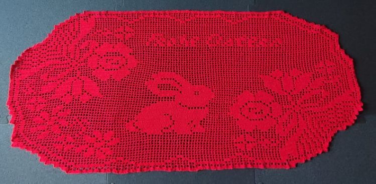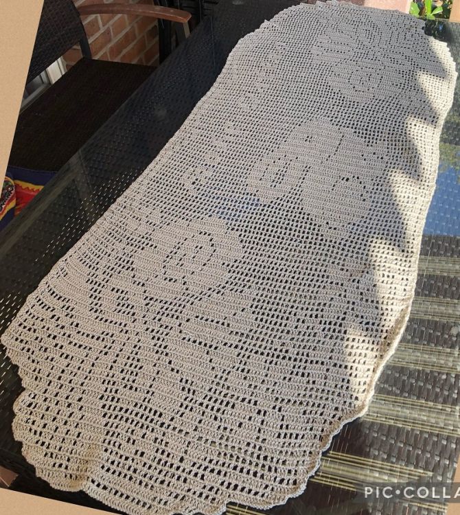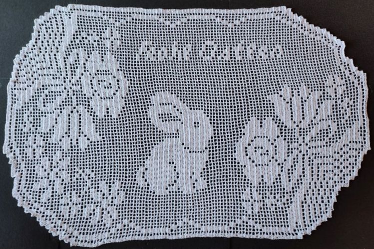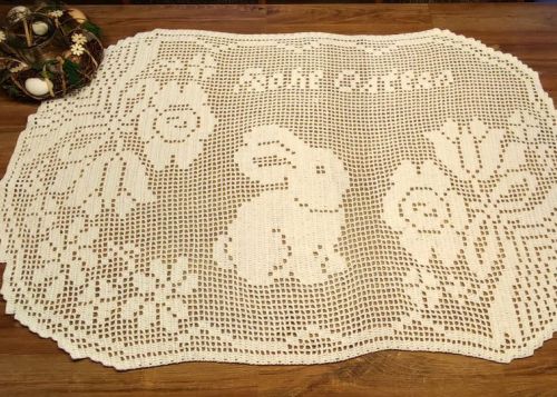 Dies ist eine Anleitung für eine österliche Tischdecke im Filethäkelstil.
