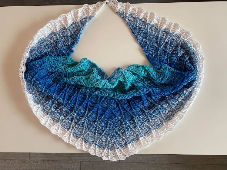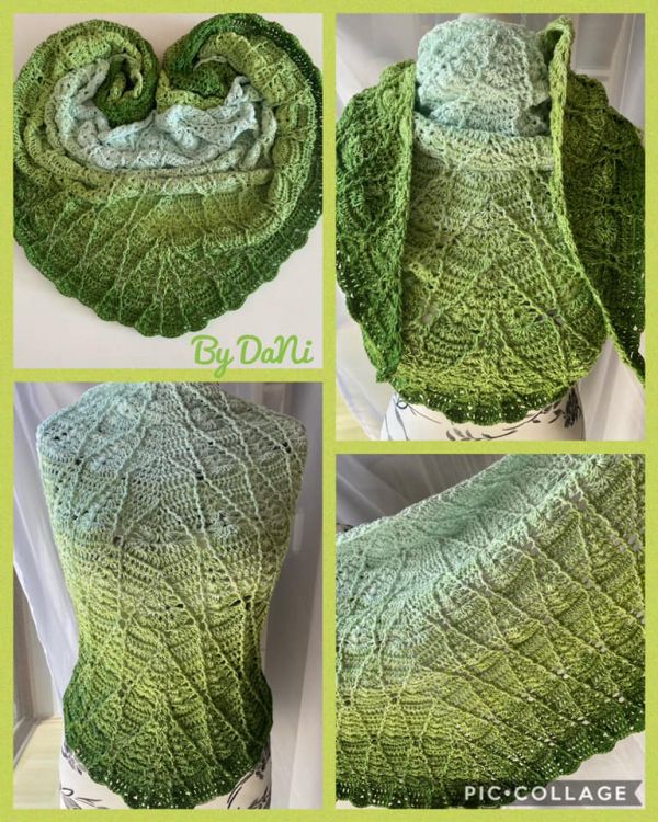 Mein Tuch hat die Grösse von ca. 180x50 cm (ungespannt) verarbeitet habe ich einen Bobbel von Nomis Valent, 1000m 4 fädig