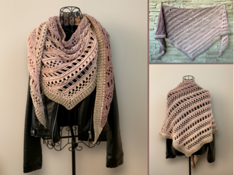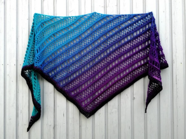 The flat triangular scarf "Delia" is a loose and airy scarf that can be crocheted in any size. It is ideal for the summer, and can be crocheted very fast.