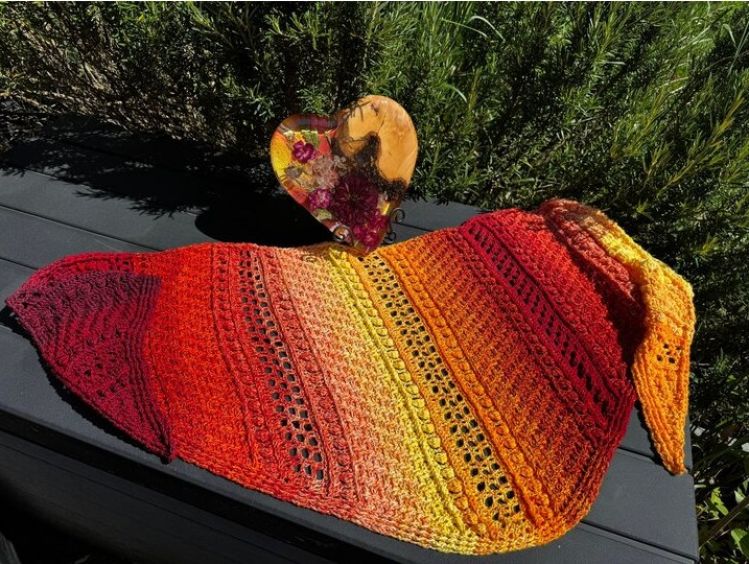 The shawl Galatea is a particularly narrow shawl that is crocheted from one side to the other. The patterns are catchy, a perfect shawl to crochet in the evening next to your favorite TV series. It can be crocheted in any size as the rows are repeated.