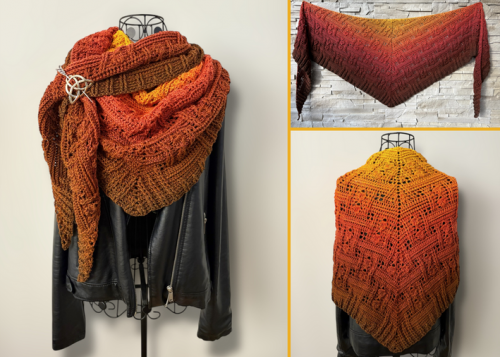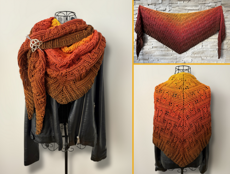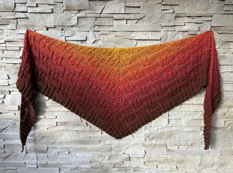 Himera ist ein zauberhaftes flaches Dreieckstuch, das mit dem wunderschönen Flechtmustern und kleinen Blättern besticht. Das Tuch hat einen toller 3D Effekt, der zum Blickfang bei jedem Outfit wird. Da sich die Reihen wiederholen, kann das Tuch in jeder beliebigen Größe gehäkelt werden. Für den Rand stehen dir 2 verschiedene Optionen zur Verfügung.
