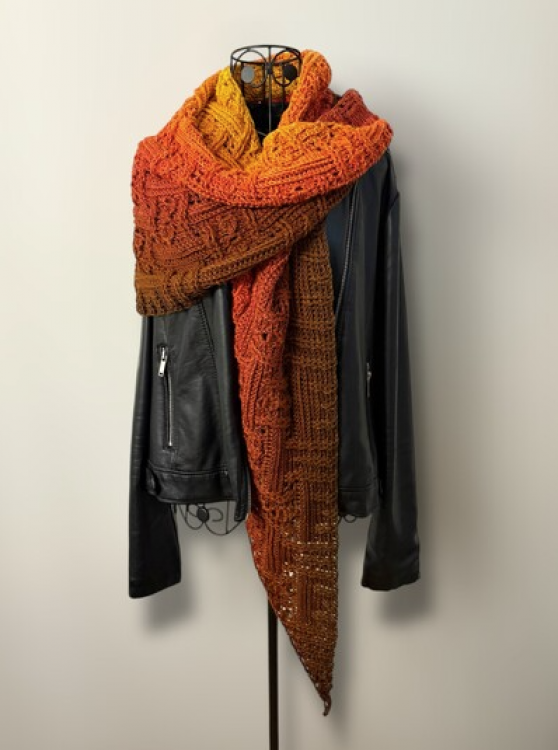 Himera is an enchanting flat triangular scarf that captivates with its beautiful braided pattern and small leaves. The scarf has a stunning 3D effect that will catch the eye with any outfit. Since the rows are repeated, the scarf can be crocheted in any size. For the border, 2 different options are included in the instructions.