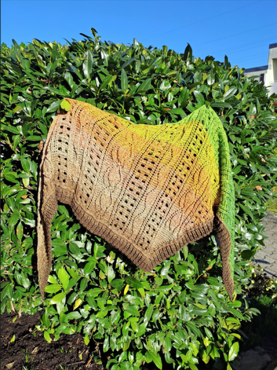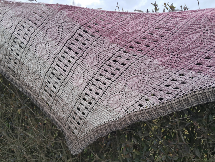 Verspielte Blätterranken, ein zauberhaftes Flechtmuster - ein wunderschönes, asymmetrisches Tuch: Das ist Larisaia!