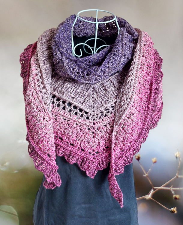 Das flache Dreiecktuch „Arainn BE“ besticht durch seinen Wechsel von verschiedenen Reliefmustern mit einem neuen lockeren Zwischenteil. Dieses Tuch eignet sich besonders für die etwas kühlere Zeit und lässt sich wunderbar tragen.