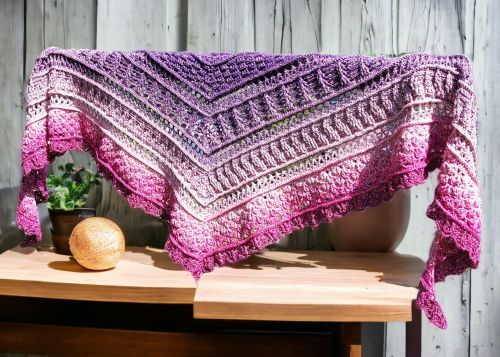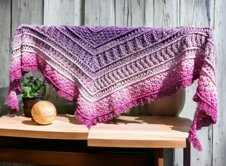 Arainn BE kann mit jeder Wolle gearbeitet werden, ebenso mit jeder Häkelnadel-Stärke. Es muss beachtet werden, ob man eher fester oder locker häkelt und dann muss dementsprechend die Nadelstärke angepasst werden. Meine Erfahrung ist, dass bei vielen Reliefmaschen eher ein lockeres Häkelbild entstehen soll, ansonsten wird das Tuch zu steif und fest und schmiegt sich nicht so schön an.