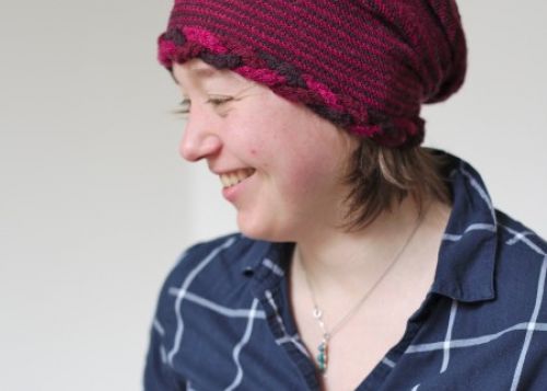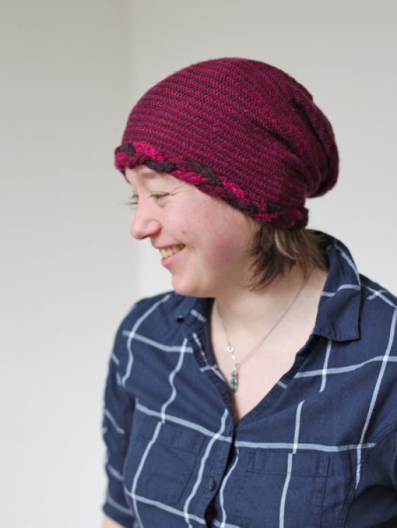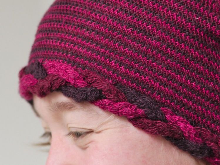 Die Mütze wird aus Kettmaschen gehäkelt, mit meiner Technik der horizontalen Zöpfe.