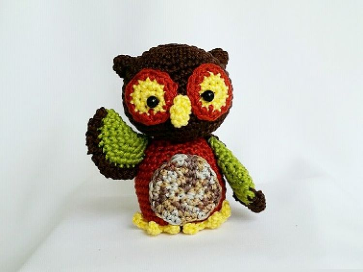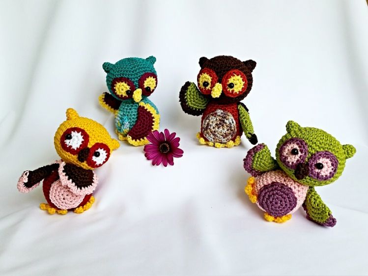 mit dem angegebenen Material werden die Eulen etwa 10-11 cm groß und erreichen eine Flügelspannweite von bis zu 13 cm