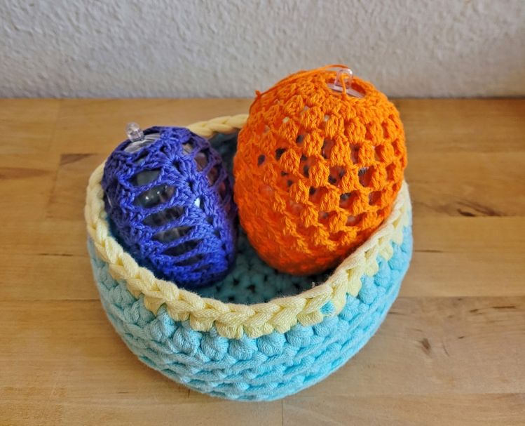 In dieser Anleitung habe ich für dich 2 Ostereier, die in verschiedenen Mustern umhäkelt sind.