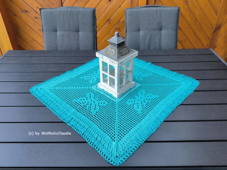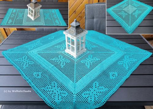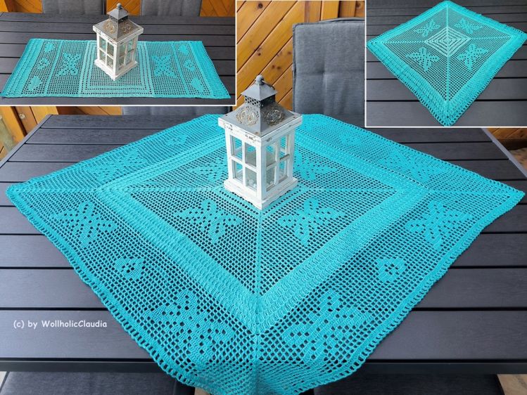 Dieses wunderschöne Set bestehend aus Tischläufer und 2x Mitteldecke (in groß und klein) ist ein Mix aus Filethäkeln und dem herkömmlichen häkeln. 3 tolle Hingucker für drinnen oder draußen.