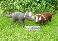 - Der Triceratops ist ist ca. 43 cm lang und hat eine Höhe von 17 cm. - Der Raptor ist ca. 42 cm lang und hat eine Höhe von 24 cm.