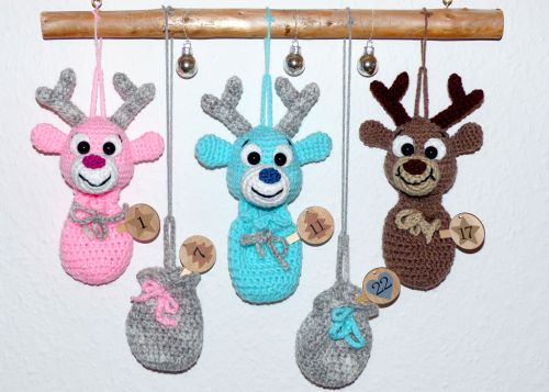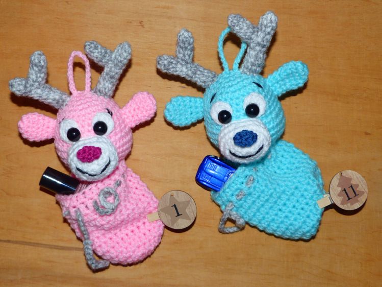 Je nach Garn- und Häkelnadelstärke variiert die Größe von den Rentieren.