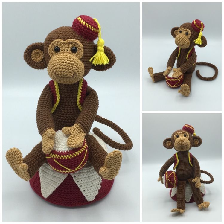 Dieses Angebot beinhaltet zwei Anleitungen... Affe Coco und Affe Cocolino. Coco bringt auch noch eine Trommel und ein Zirkuspodest mit.