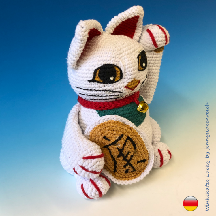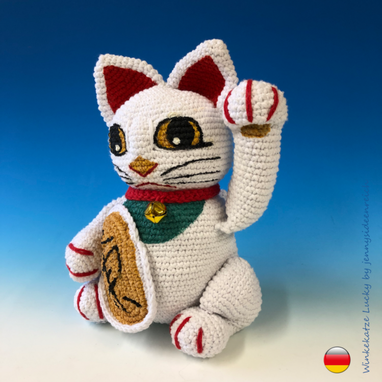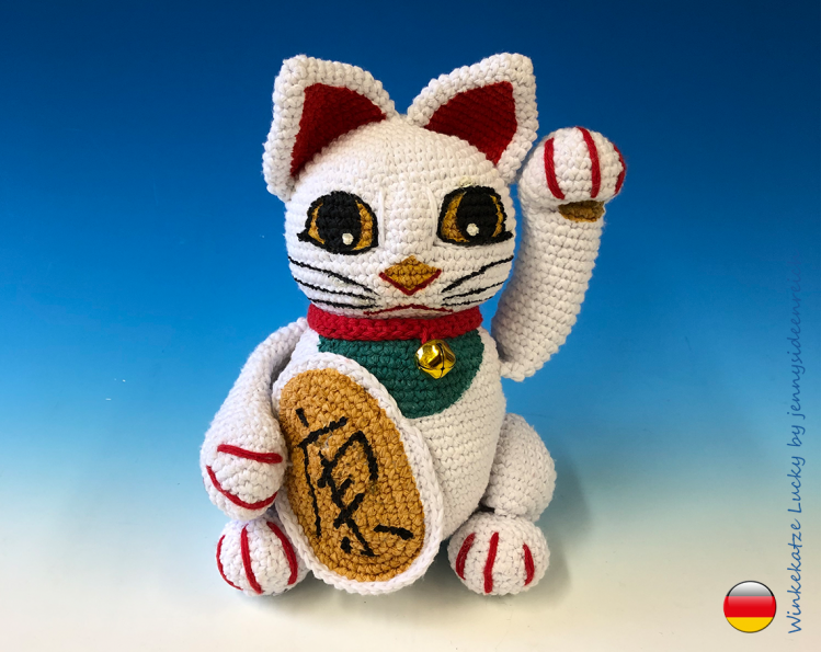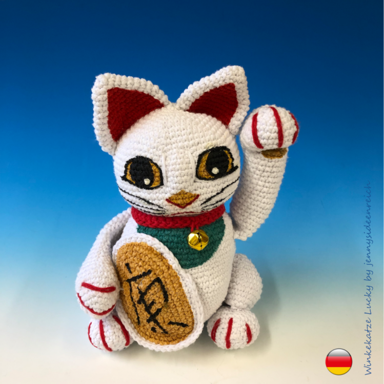 Winkekatze Lucky, chinesische Glückskatze, Häkelanleitung