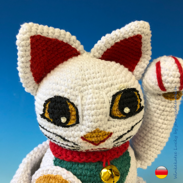 Ihr könnt hier die komplett ausformulierte Häkelanleitung zu Lucky der Winkekatze erwerben.