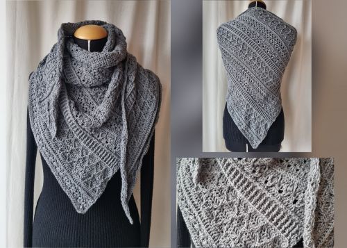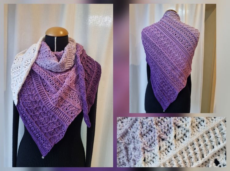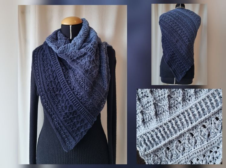 Dieses tolle Tuch wird von der Spitze aus immer breiter werdend gehäkelt. Die Zunahme erfolgt nur auf einer Seite, deshalb bekommt das Tuch eine asymmetrische Form.