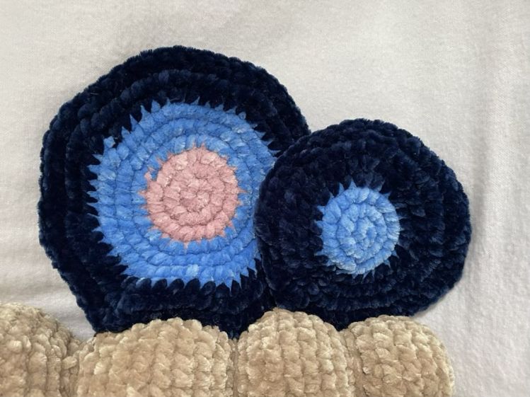 • Material: Chenillewolle beige, dunkelblau, hellblau & rosa je 1 Knäuel á 100g