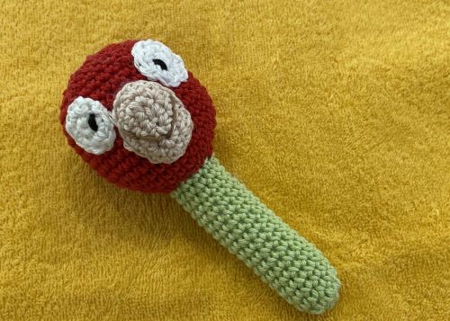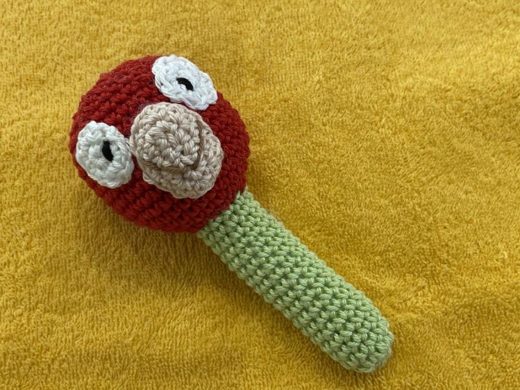 Unter Verwendung des angegebenen Materials wird die Rassel ca. 14 cm groß
