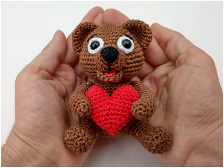 Auf 18 Seiten und 54 Fotos erkläre ich Dir die Nacharbeitung von den abgebildeten kleinen Bärchen. Die Kleinen werden mit angegebenen Garn ca. 11 cm groß (mit Ohren)