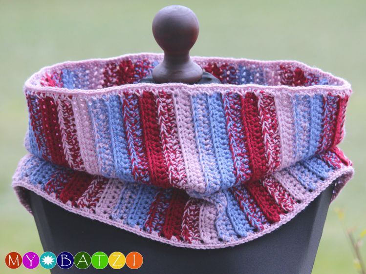 Für den Loop werden je Farbe je nach Größe 1,5 - 2 Knäuel benötigt.