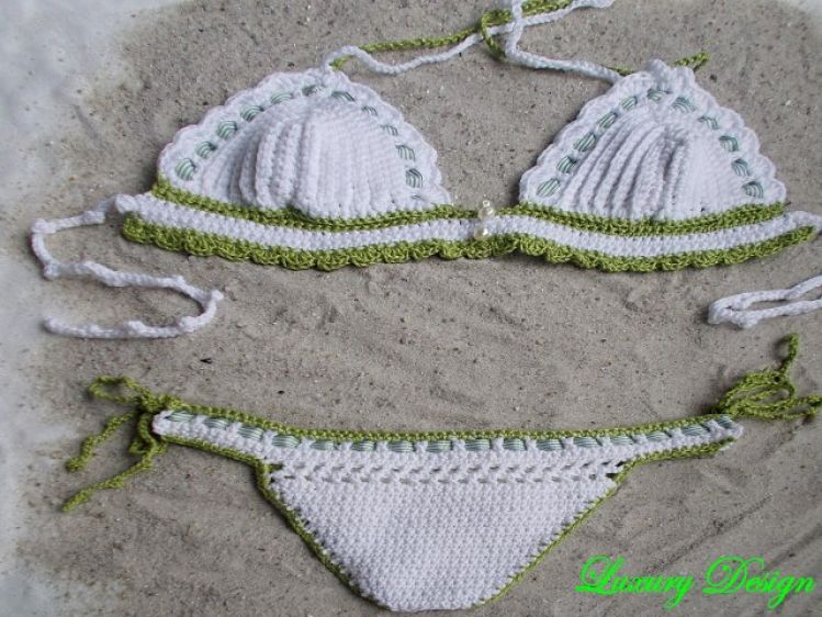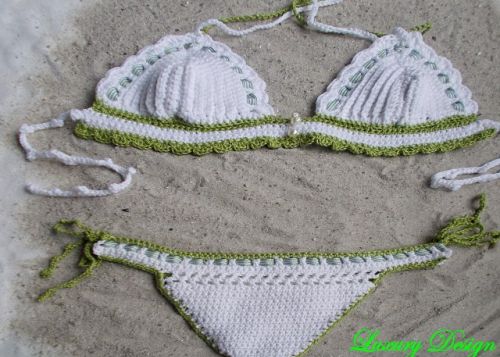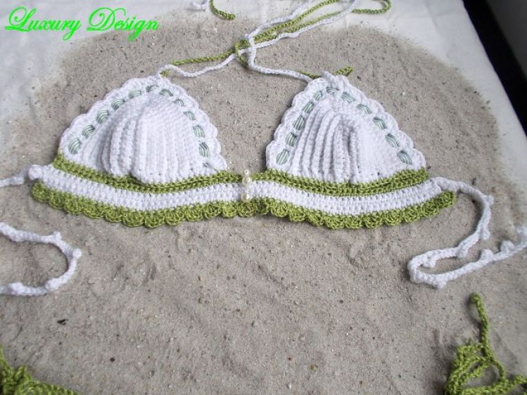 Ein Bikini mit vielen hübschen Details,der bestimmt nicht nur uns Frauen gefällt.Da die Größe individuell angepasst werden kann ist er auch für kleine Mädchen ein idealer Strandbegleiter.Gut sitzende Körbchen sorgen dafür, daß dieser Bikini auch mit einer größeren Oberweite getragen werden kann,der Blickdichte, Teil der Körbchen dient dafür ,daß bei kleinerer Körbchengrösse auch ein Push up genutzt werden kann. Der verspielte Style mit den Satinbänder und den Perlen ist momentan der Trend.