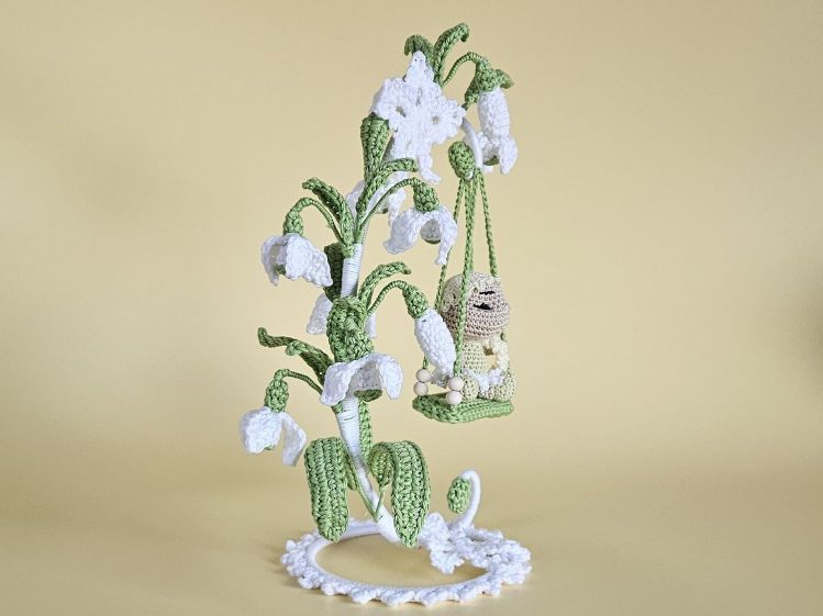 Die Anleitung enthält alle Schritte zur Erstellung der Figur, der Blüten sowie der dekorativen Schaukel.