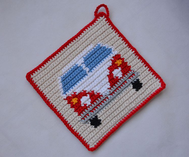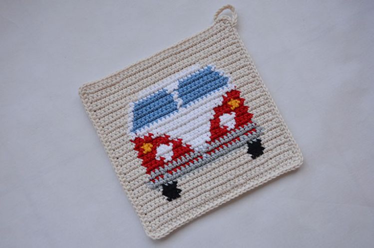 Mit der Häkelanleitung (E-book)kannst du ganz einfach die Bulli Topflappen selber häkeln. Ob für dich selbst oder als Geschenk zu Geburtstag, Weihnachten oder Einweihung.