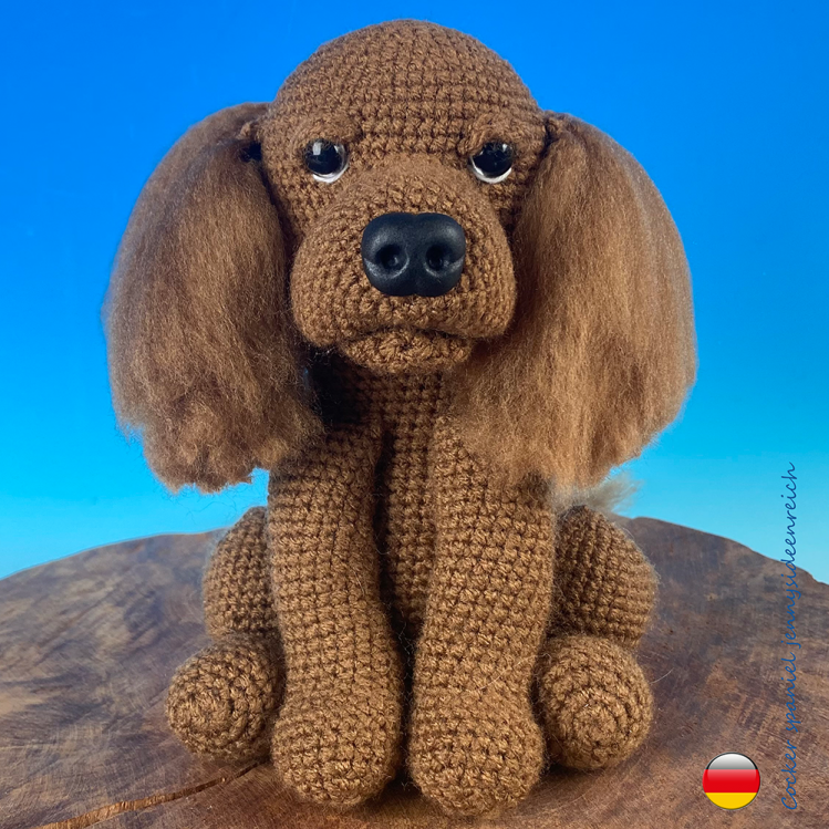 Ihr könnt hier die komplett ausformulierte Häkelanleitung zu meinem Cocker Spaniel erwerben.