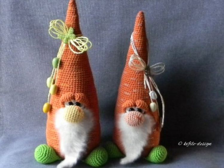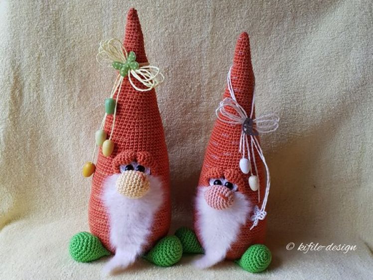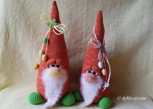 Um dir auch so einen Wichtel zu häkeln benötigst du folgendes Material : Baumwolle 50 gr/ 125 m - 1 Knäuel in orange , Reste in grün und Wunschfarbe für die Nase, etwas weiß für die Augen Häkelnadel Nr 2,5 ( dann wird dein Wichtel ca 27 cm hoch) mit Häkelnadel Nr 3 wird er ca 31 cm
