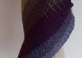 Das Muster ist ein kleiner Garnfresser. Das asymmetrische Tuch habe ich aus einem Bobbel mit 1000m Lauflänge gehäkelt und damit eine Größe von knapp 140cm Breite und 65cm Tiefe erreicht. Für das symmetrische habe ich ca. 1250m Lauflänge verbraucht und eine Größe von 150cm x 75cm bekommen. Damit es nicht zu steif wird, empfehle ich eine größere Nadelstärke. Etwa eine 3,75er oder 4er Häkelnadel für einen 3fädigen Bobbel (gefachtes Farbverlaufsgarn).