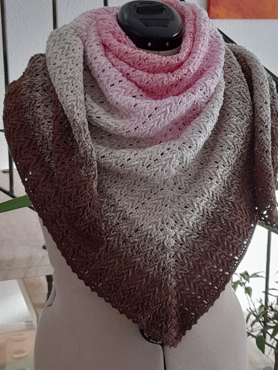 Mit dieser Anleitung kannst Du dir ein Tuch in 2 Varianten häkeln, entweder symmetrisch oder asymmetrisch. Du beginnst entweder oben in der Mitte oder an einer Seite.